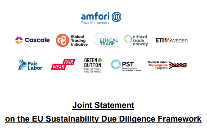 Today, eleven organisations – including the Social & Labor Convergence Program, amfori, Cascale, Ethical Trading Initiative (ETI), ETI Norway, ETI Sweden, ETI Denmark, Fair Labor Association, Fair Wear, German Partnership for Sustainable Textiles, and Green Button – release a joint statement on the EU Sustainability Due diligence framework in light of the upcoming Omnibus legislation expected to amend key sustainability regulations.